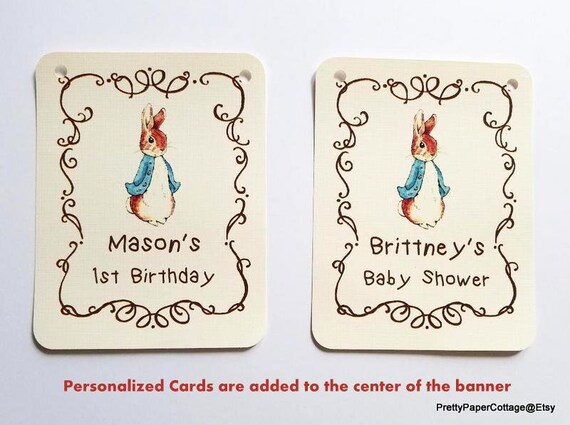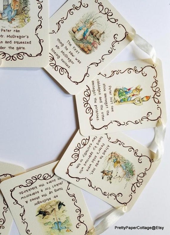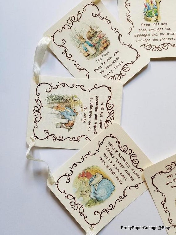 Peter Rabbit Banner Story Book Quotes Baby Shower Birthday First Birthday Banner Beatrix Potter Bunting Personalized Party Decor